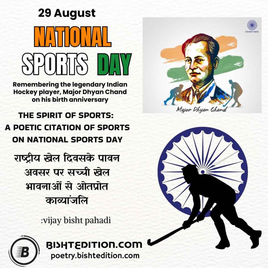 National Sports Day is celebrated on August 29 in India to mark the birth anniversary of Major Dhyan Chand. On the occasion of this glorious day of sports, paying homage to the Father of Sports of modern India, Major Dhyan Chand ji, a poetic composition imbued with high ideals of sports, philosophy of sports and […]